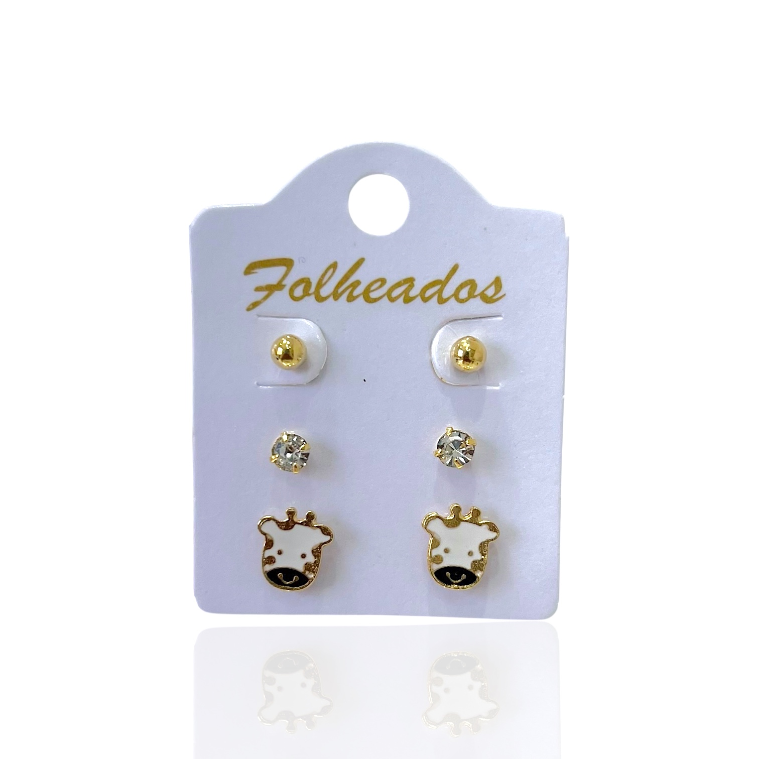 Trio Brincos Folheado Ouro 18k e Prata 925 Girafa