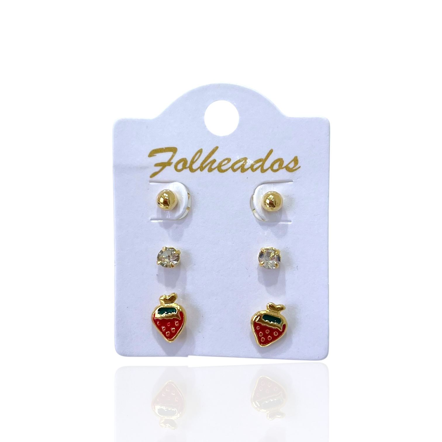 Trio Brincos Folheado Ouro 18k e Prata 925 Morango