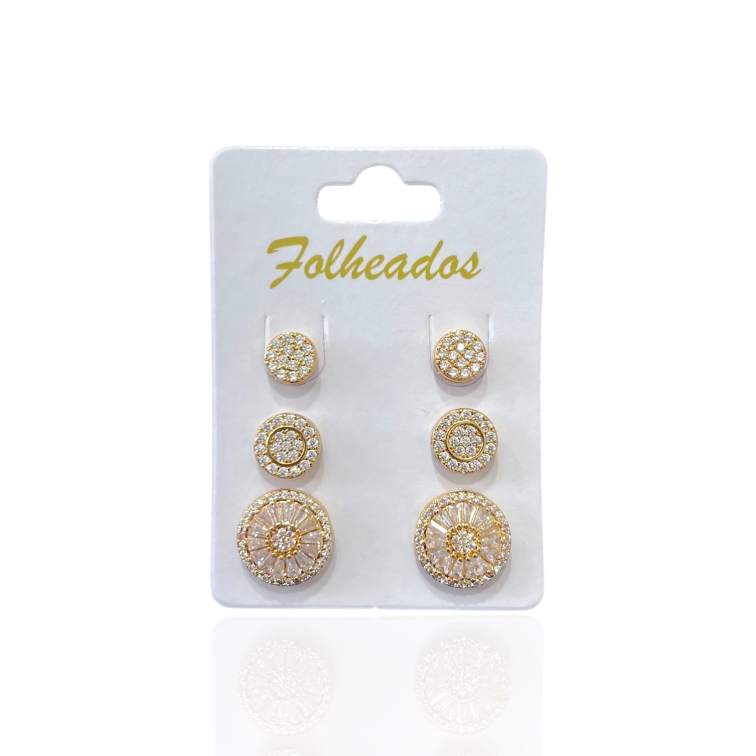 Trio Brincos Folheado Ouro 18k e Prata 925 Redondo Cravejado