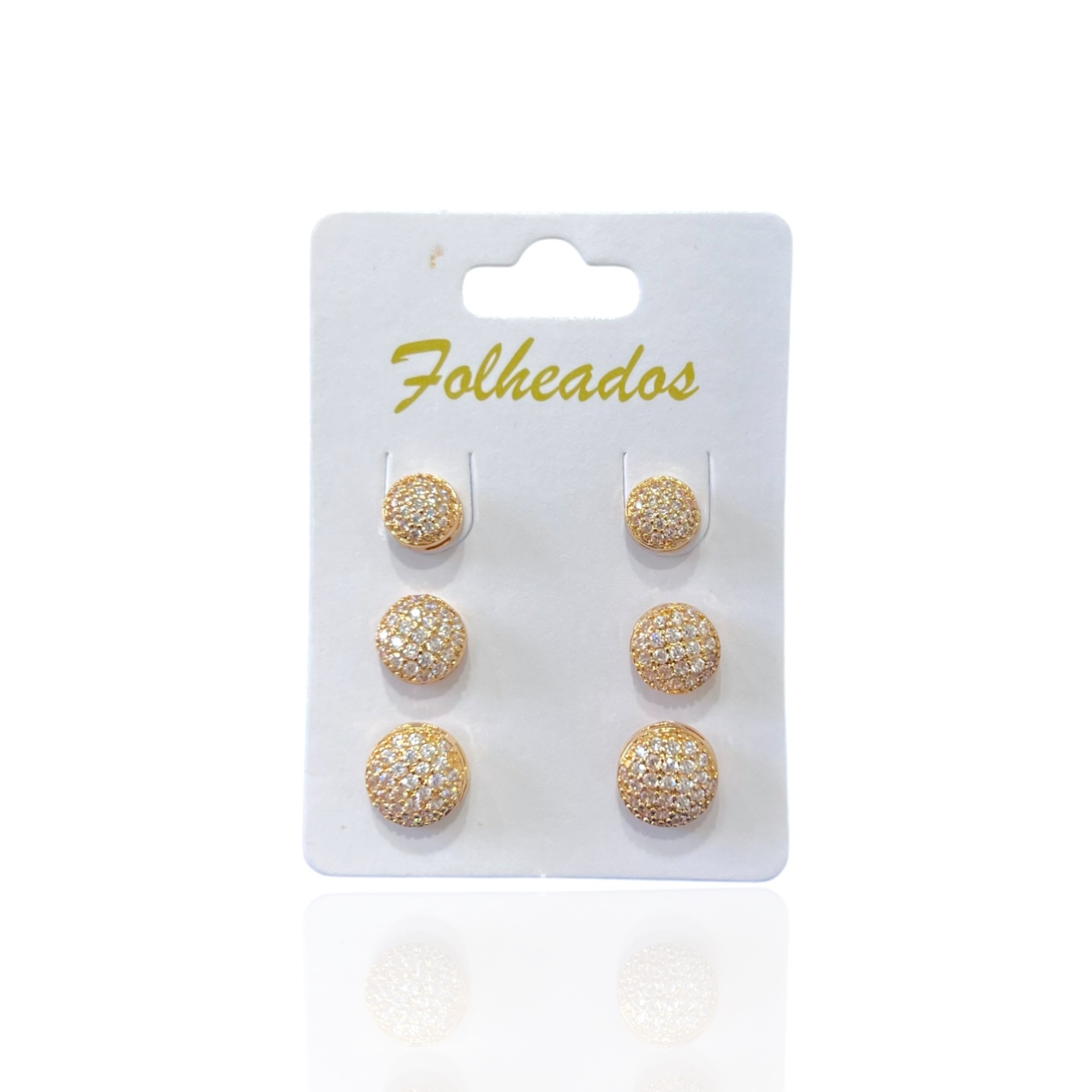 Trio Brincos Folheado Ouro 18k e Prata 925 Redondo Cravejado