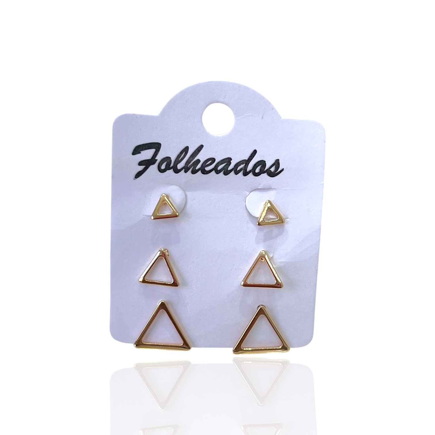 Trio Brincos Folheado Ouro 18k e Prata 925 Triângulo
