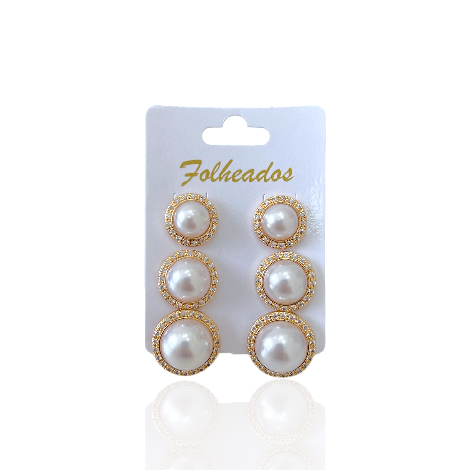 Trio Brincos Folheado Ouro 18k Pérolas Cravejada