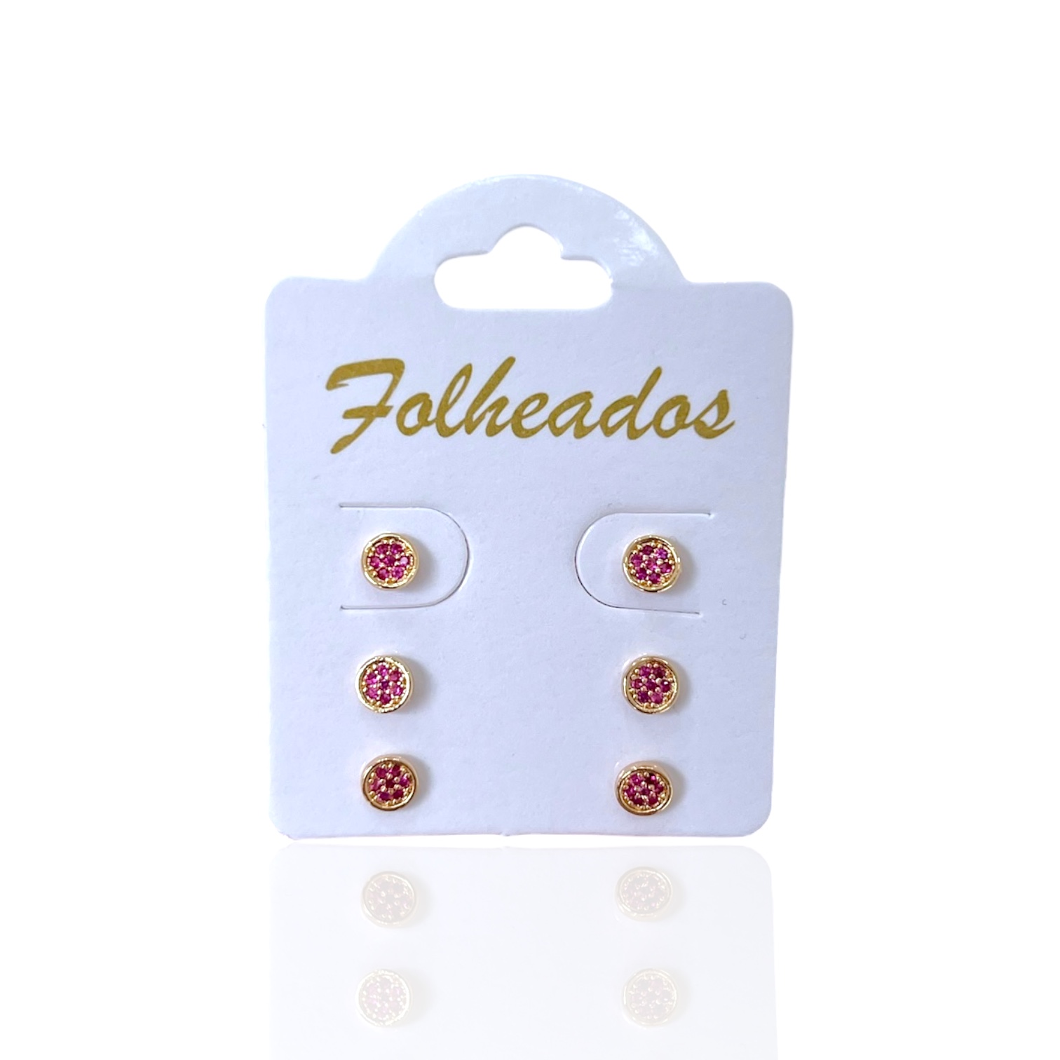 Trio Brincos Folheado Ouro 18k Redondo Cravejado